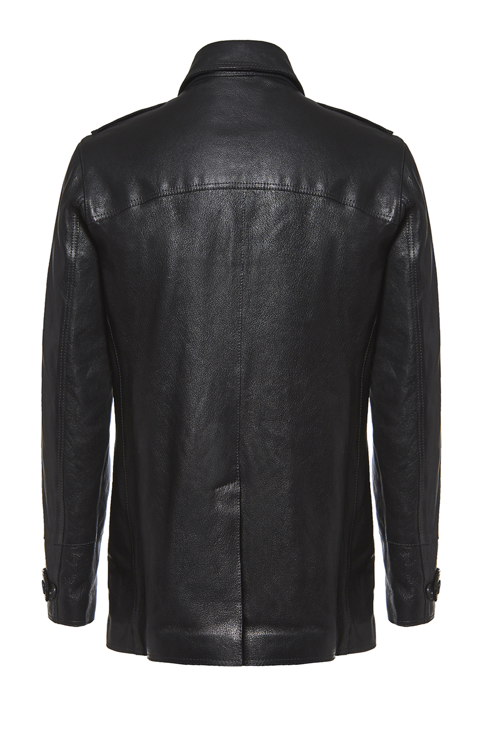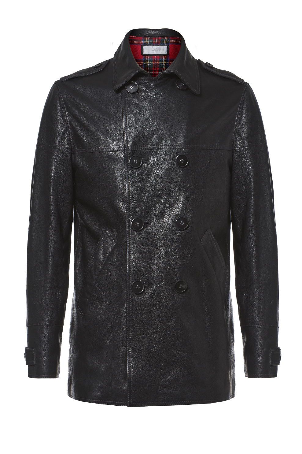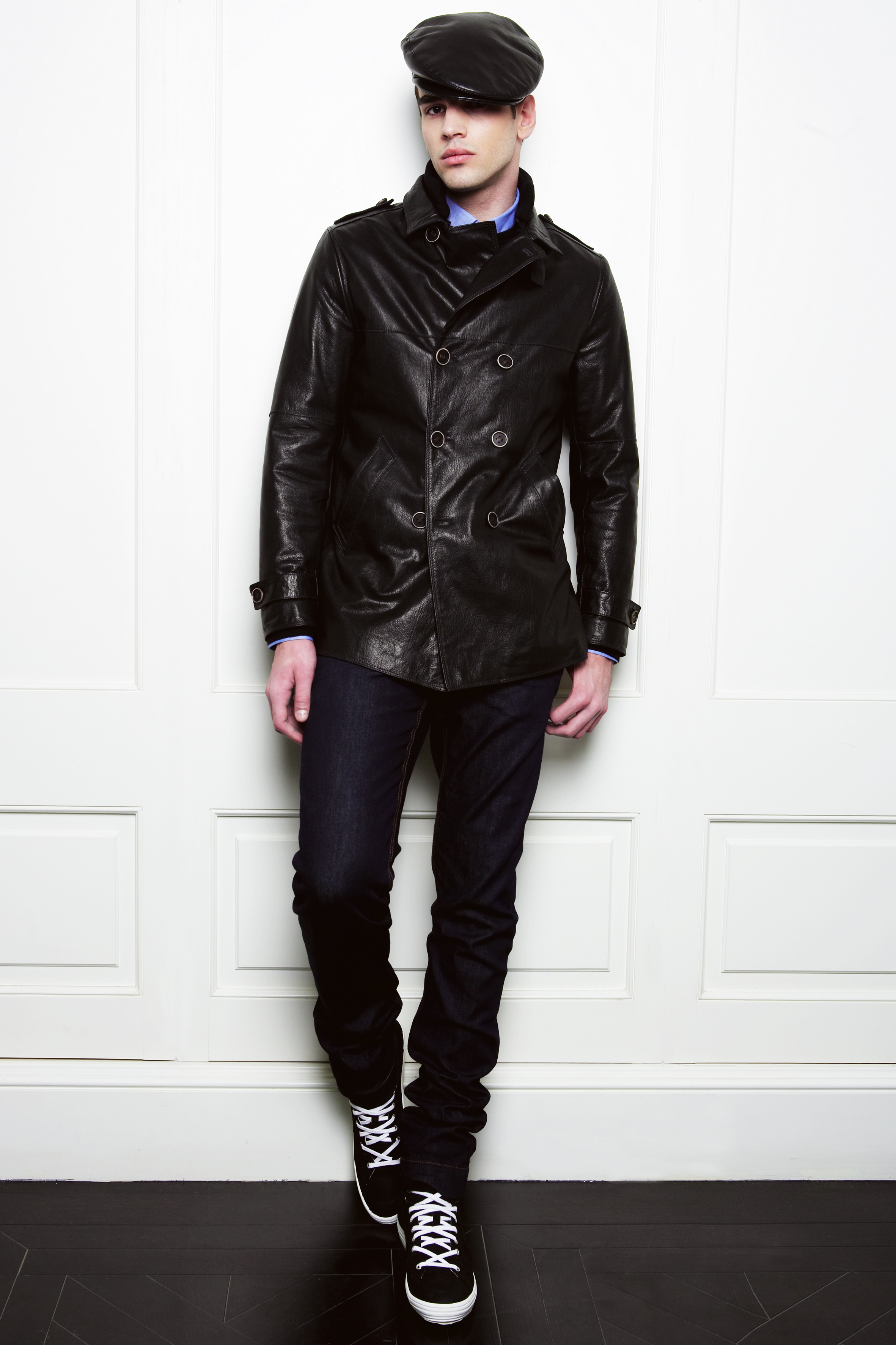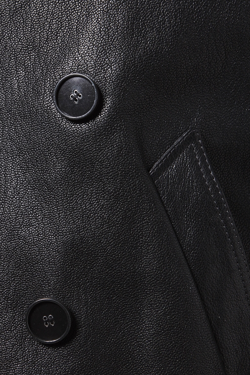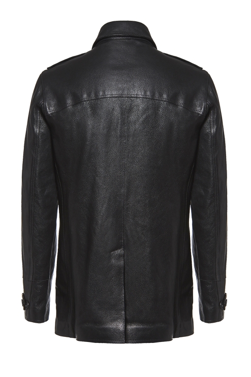 5226Homme Μαύρο σταυρωτό δερμάτινο παλτό