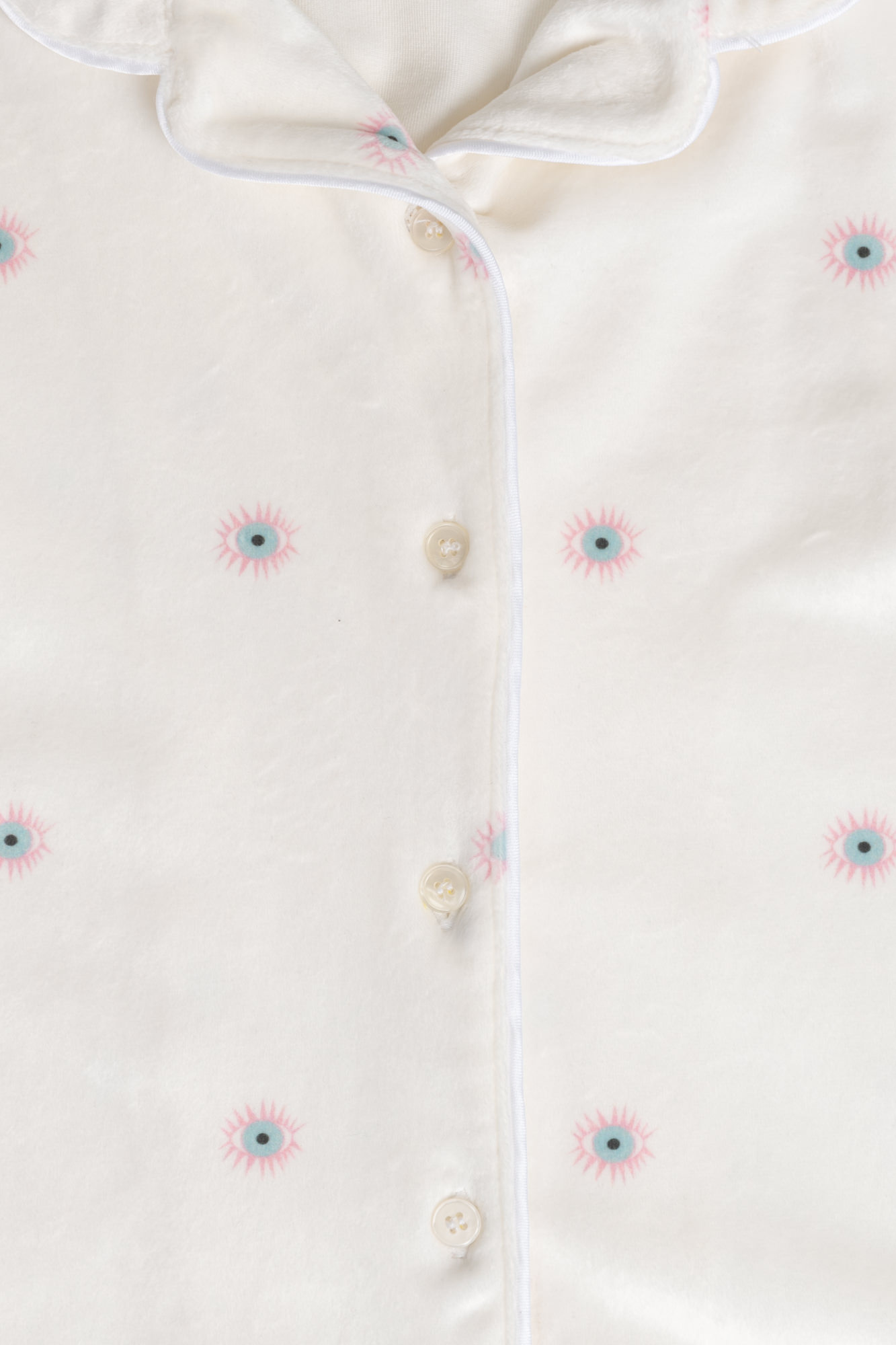 MIni pink eyes print all over Soft and comfortable two-piece pajamas made for cozy nights and sweet dreams. Gentle on delicate skin, with a matching set available for mummys for the perfect matchy look.