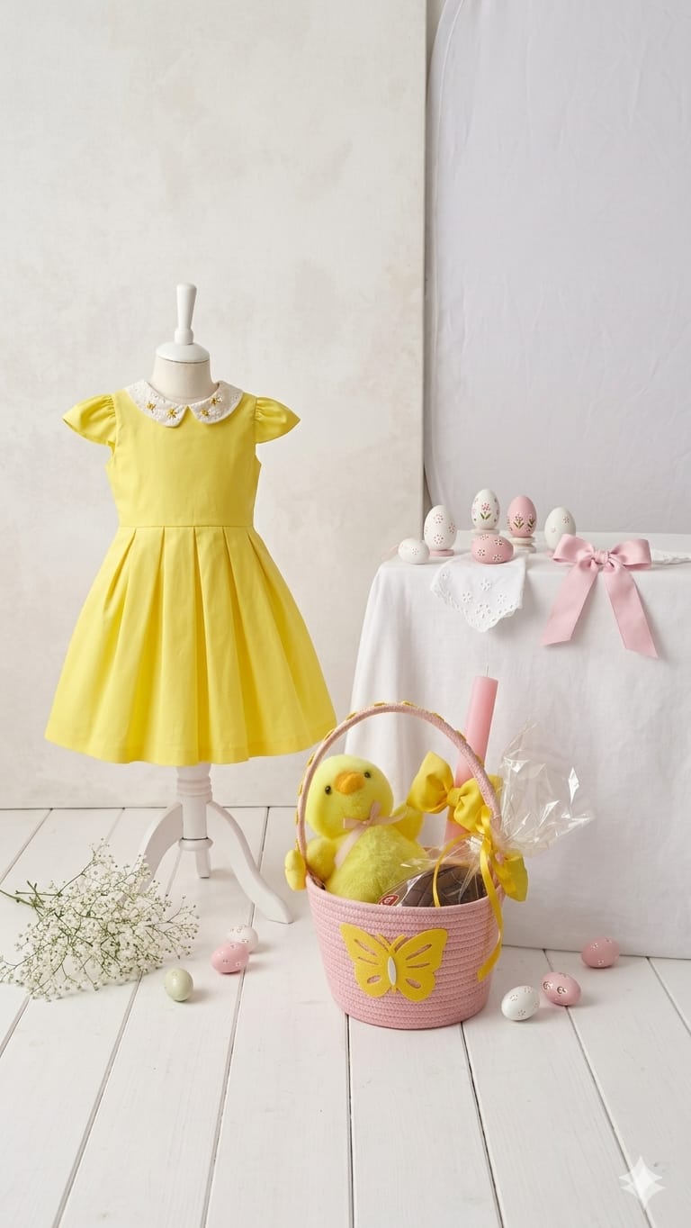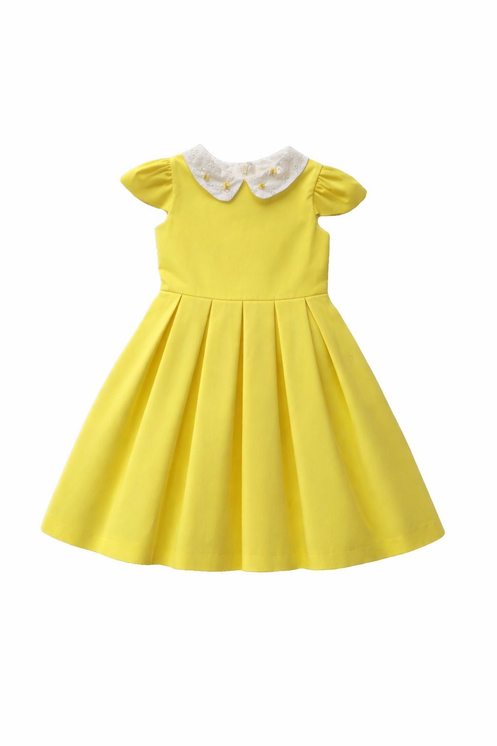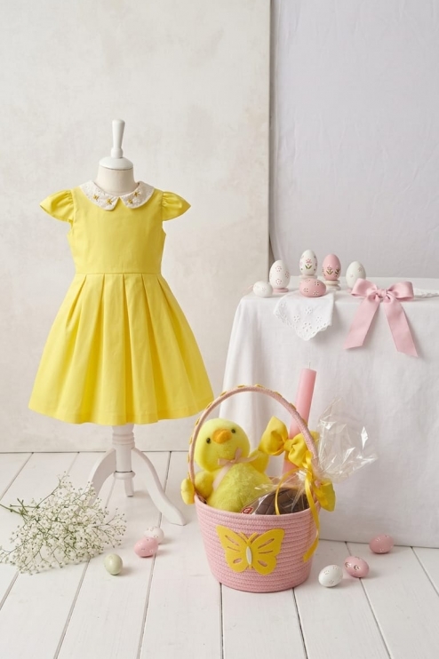 Yellow cotton dress with lace collar
