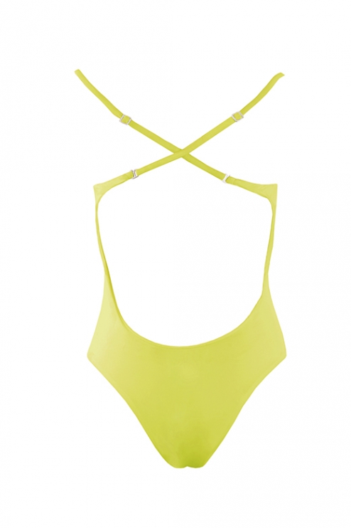 The effortless statement swimsuit: A high-leg tank maillot ,bold lime color with crossover back